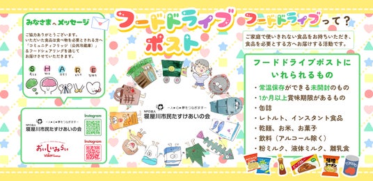 特定非営利活動法人 寝屋川市民たすけあいの会(所在地:大阪府寝屋川市、共同代表理事 後藤雅子、中務飛鳥)は、株式会社バロー(本部:岐阜県多治見市)が運営する「スーパーバロー」寝屋川市内2店舗と連携し、2026年1月28日(水)より、家庭の余剰食品を回収する「フードドライブポスト」を常設設置することをお知らせいたします。