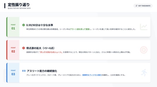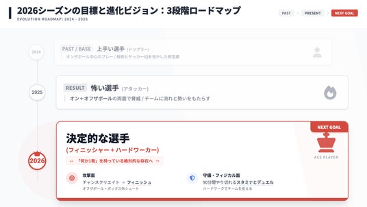 ⚫︎株式会社TNKは、所属選手である笠柳翼(プロサッカー選手)のパフォーマンスを最大化するプロジェクト「Footballer Project」において、キャリア設計、パフォーマンス映像・データ分析、栄養学、フィジカル理論を統合し、勝利への道筋を再現可能な形で「解読」してきました。
