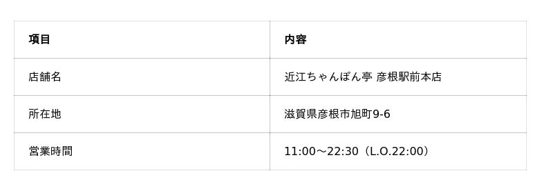 いつも近江ちゃんぽん亭 彦根駅前本店をご利用いただき、誠にありがとうございます。