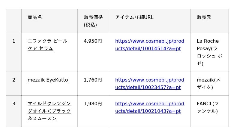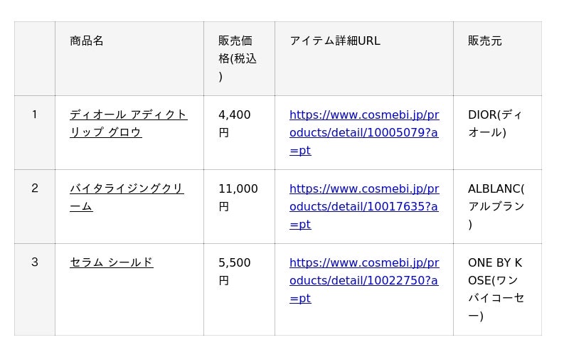 ・公式サイト :https://www.cosmebi.jp/?a=pt