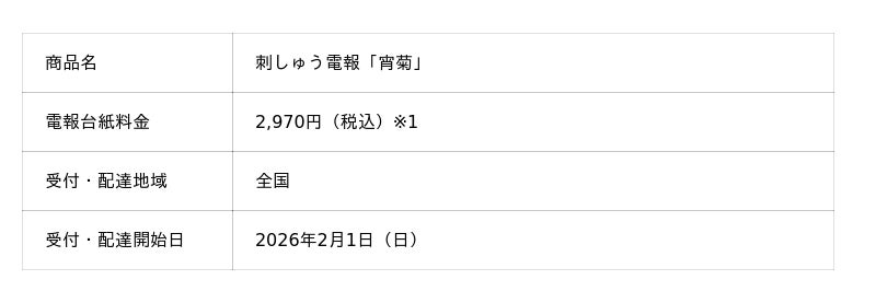 NTT東日本およびNTT西日本(以下、NTT東西)は、新たに弔慰用電報台紙、刺しゅう電報「宵菊(よいぎく)」(以下、本商品)を2026年2月1日(日)より全国で販売開始します。