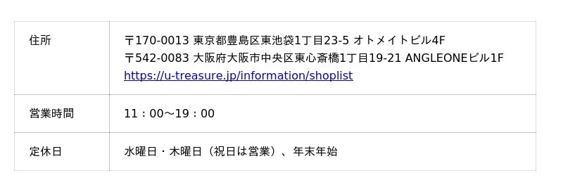 お客様のお問い合わせ窓口(ユートレジャーオンラインショップ)◆お問い合わせフォーム>> https://u-treasure.jp/contact