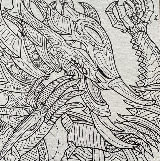 静岡県生まれの神奈川県育ち。主に黒ボールペンを使い、下描きなしで『テクノメカシリーズ』『魔神獣シリーズ』など独自のロボットや怪獣を生み出している。2023年5月、NHK『no art, no life』にて特集・紹介される。