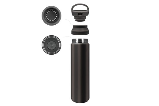 ハンドル付き真空ステンレスボトル350ml (ブラック/ベージュ)