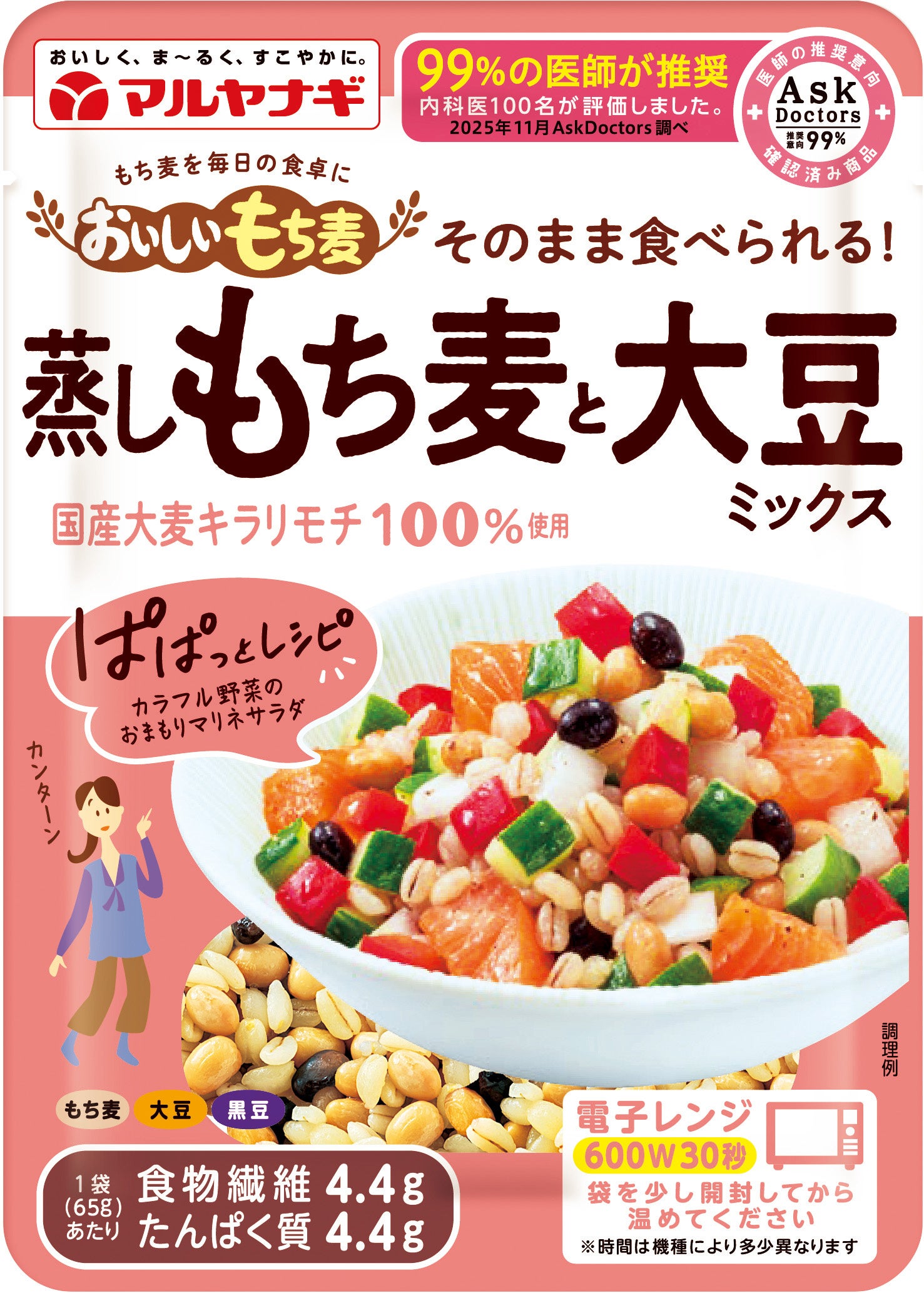 - おいしいもち麦シリーズ(蒸しもち麦・蒸し雑穀・蒸しもち麦と大豆ミックス)