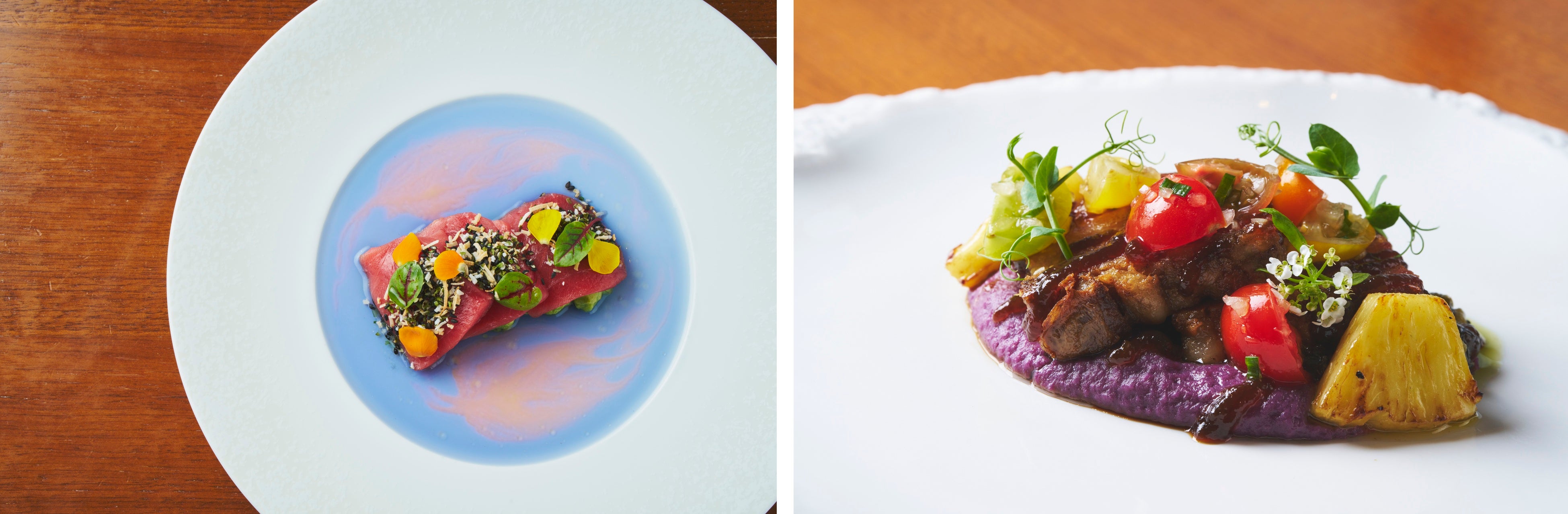 昨年、大きな反響をいただいたハレクラニ(ワイキキ)のバンケット・イベントシェフ、シェイデン・サトウが再来。本イベントのために、五感を満たす特別なコース料理を監修いたしました。バタフライピーで彩ったマグロの前菜に始まり、ハワイのソールフードである「オックステールスープ」や「ラウラウ」を沖縄の厳選食材と融合させた、唯一無二の逸品をご堪能いただけます。ハワイ最大の食の祭典「ハワイフード&ワインフェスティバル」や「ハワイ国際映画祭」のオスカーナイトガラディナーを成功に導いてきた実力派。世界を魅了するサトウの確かな技術と感性が、沖縄の地で新たな美食の物語を紡ぎ出します。