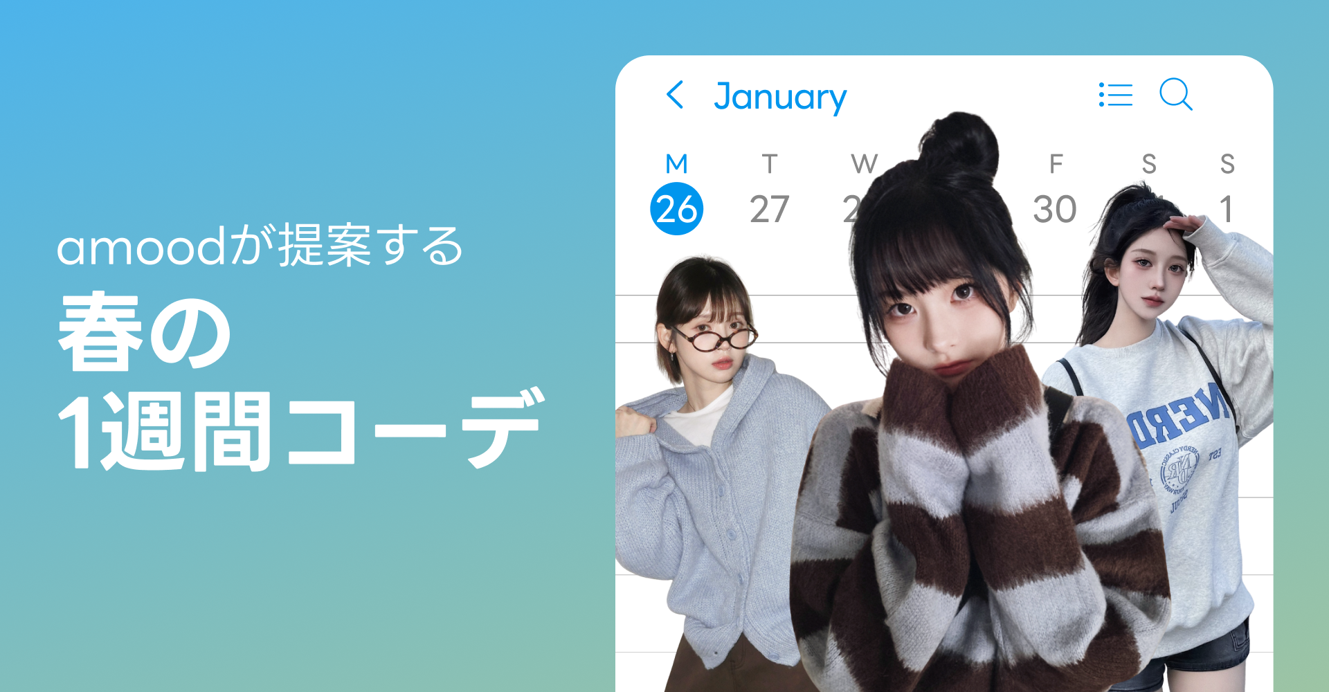 K-ファッション通販アプリ「amood(アムード)」が、1月26日(月)より2026年2月1日(日)まで商品別最大70%OFFに加え、さらに10%OFF追加クーポンを配布する特別な特典満載の「春先取りSALE」を開催します。今回のキャンペーンには、MUCENT(ムセント)、Anyonemore(エニワンモア)、BEIDELLI(ベイデリー)、SUGAR POWDER(シュガーパウダー)など、日本で大人気な韓国ブランドが多数参加しており、季節を先取りする感度の高いアイテムをチェックできます。