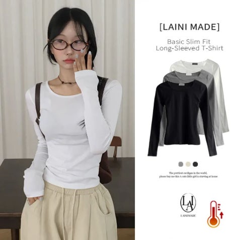 ベーシックスリムフィットロングスリーブTシャツ 通常タイプと裏起毛タイプの2バージョン展開で、オールシーズン活躍するアイテムです。LAINI自社製作(MADE)製品ならではの高いクオリティとリーズナブルな価格が自慢。チクチク感のない柔らかい生地で、着心地抜群です。ホワイト、グレー、ブラックの活用度が高い3色に、S・M・Lの3つのサイズを展開しています。