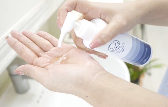 STEP1:洗顔料(薬用洗顔料を手または泡だてネットに10円玉大に出し、軽く泡立てましょう)