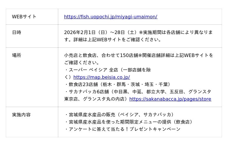 ~飲食店・小売店150店舗で「みやぎ海のうまいもん祭り」開催~