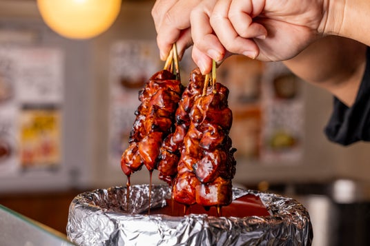 もつ焼きは、特製のタレが素材の旨みを引き立て、