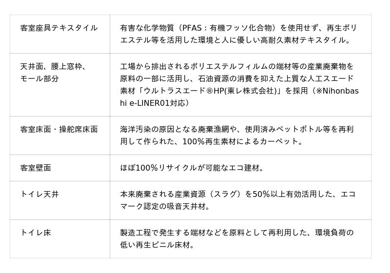 船内の内装材についても、環境に配慮した素材を多く採用しています。