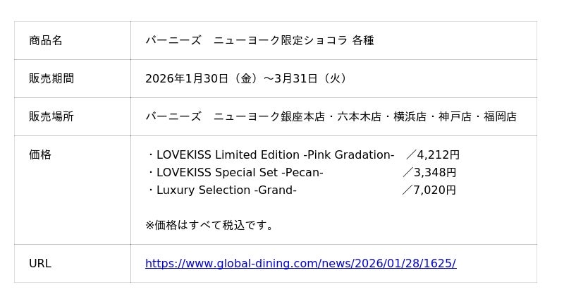 東京・茗荷谷からこだわりのショコラを発信する「デカダンス ドュ ショコラ」(運営:株式会社グローバルダイニング)は、2026年1月30日(金)より、ブランドのアイコンであるリップ型ショコラ「ラブキス」の限定モデルを、バーニーズ ニューヨークにて期間限定で発売いたします。特別にアップデートされた、ここでしか手に入らない限定カラーとフレーバーの共演をお楽しみいただけます。