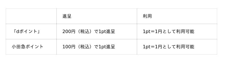 ▼「dポイント」、小田急ポイントの進呈条件一覧
