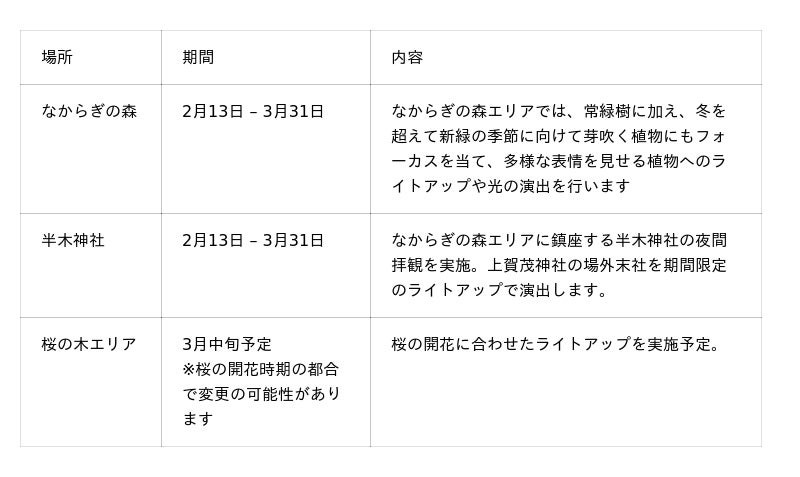 京都府、京都府立植物園アートナイトウォーク実行委員会および三井不動産株式会社が主催する、夜の京都府立植物園を舞台とした没入型体験イベント「LIGHT CYCLES KYOTO(ライトサイクル京都)」では、冬から春へと移ろう季節を光で表現する演出「春待ちのイルミネーション」を、2026年2月13日から3月31日にて開催します。
