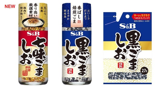 エスビー食品株式会社は、こだわりのごましおシリーズより、香り高い7種類の香辛料と鰹節粉をブレンドした「七味ごましお」を新発売し、「黒ごましお」「袋入り黒ごましお」をリフレッシュします。