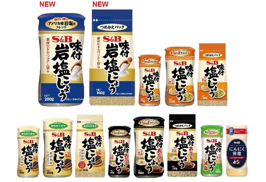 エスビー食品株式会社は、和食・洋食・中華などの料理の下ごしらえ、仕上げに幅広くご利用いただける「味付塩こしょう」シリーズより「味付岩塩こしょう」「袋入り味付岩塩こしょう」を新発売し、既存11品をリフレッシュします。
