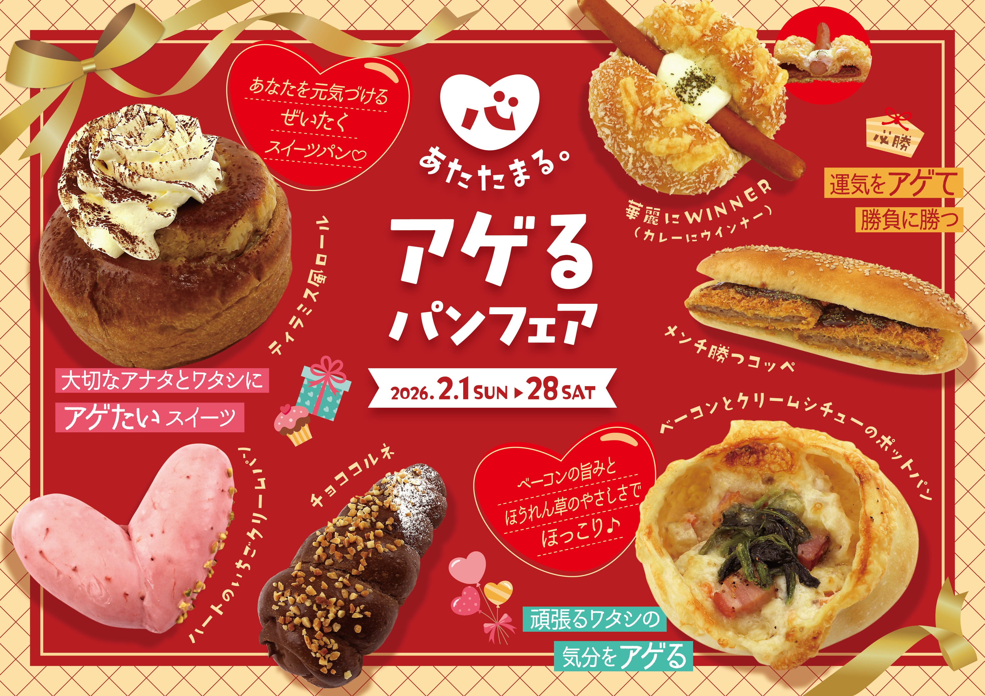 株式会社阪急デリカ(本社:大阪府池田市、代表取締役社長:森川保)が運営する『阪急ベーカリー』では、2026年2月1日(日)より『心、あたたまる。アゲるパンフェア』を開催いたします。
