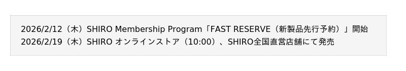 公式Instagram:https://www.instagram.com/shiro_japan?igsh=NTc4MTIwNjQ2YQ==