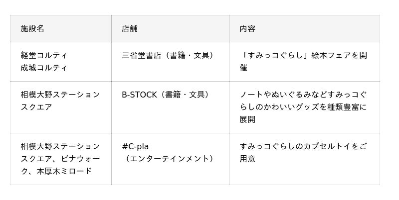 ※詳しくは、特設サイト(https://www.odakyu-sc.com/special/sumikko-odakyu-sc/)各施設ホームページのイベント・キャンペーンページをご覧ください