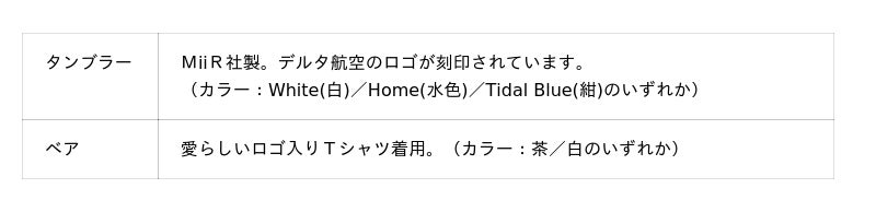 旅先やオフィスで大活躍するスタイリッシュなタンブラーと、デルタ航空のロゴ入りTシャツを着たキュートなベアです。
