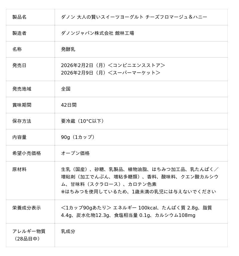 ダノンジャパン株式会社(本社:東京都目黒区、代表取締役社長:ロドリゴ・リマ、以下ダノンジャパン)は、新しいデザートヨーグルトシリーズ「ダノン 大人の賢いスイーツヨーグルト」から、新フレーバー「チーズフロマージュ&ハニー」を2月2日(月)より全国のコンビニエンスストアにて、2月9日(月)より全国のスーパーマーケットにて発売します。また昨年11月よりコンビニエンスストア・会員制ストアで限定販売し、ご好評をいただいている「ショコラフォンデュ」フレーバーは、2月9日(月)より全国のスーパーマーケットにて順次販売を開始し、本シリーズを全チャネルへ本格展開します。