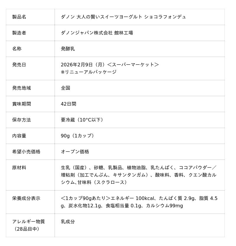 また、2025年11月より全国のコンビニエンスストア・会員制ストアで限定販売している、シリーズ第一弾の「ダノン 大人の賢いスイーツヨーグルト ショコラフォンデュ」は、昨年からのご好評を受け、2月9日(月)より順次全国のスーパーマーケットにて販売を開始します。(ショコラフォンデュ製品に関するプレスリリースは下記をご参照ください)