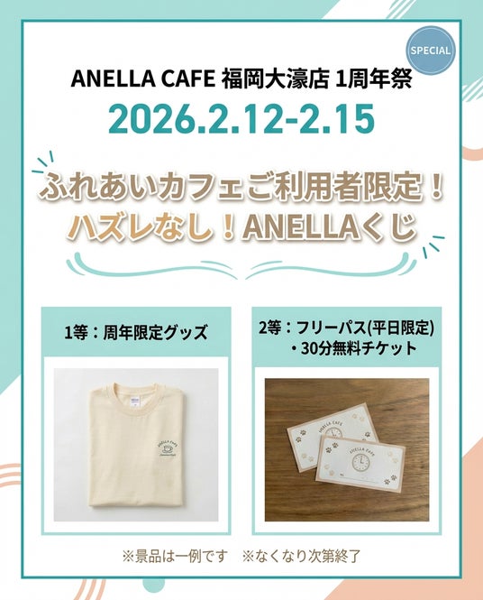保護犬・保護猫シェルターとふれあいカフェ、そしてB型就労支援施設を併設する「ANELLA CAFE 福岡大濠店」を運営する株式会社Duffy&Coco(本社:福岡市中央区)は、2025年2月のオープンから1周年を迎えるにあたり、「ANELLA CAFE 福岡大濠店 1周年祭」を開催いたします。