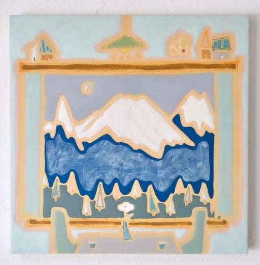 山脈の見える部屋41.0×41.0cm, 2026, 麻紙, 岩絵具, 膠, クレヨン