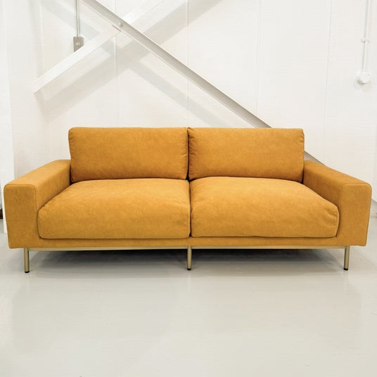 今回、「ウンコちゃんの家具屋さん」は同ブランドとチームアップし、プルートシリーズから3人掛けソファを別注商品として販売いたします。低めの設計とルーズな張り感、たっぷりと使用した柔らかなフェザーによって、くったりと沈み込むこだわりの座り心地が特長です。張地には、柔らかく保温性にも優れたウール混フランネル生地を採用。汗染みや耐摩耗性などの耐久試験でも高い結果が出ており、水温30度以下で洗濯機洗いが可能な点も嬉しいポイントです。あぐらもかけるほど広々とした奥行きのある座面に、ボリューム感のある肘掛けを組み合わせた開放的なデザイン。思わず全身を預けたくなる沈み込みと、包み込まれるような感触を楽しめます。さらに、本体を支えるすっきりとしたスチール脚とのコントラストが、軽やかで洗練された印象を演出します。