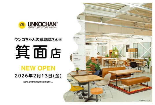 この度、株式会社 木楽家本舗(本社:大阪府八尾市、代表取締役社長:大町圭司)が運営する、家具と雑貨のワンダーランド「ウンコちゃんの家具屋さん」は、2026年2月13日(金)に「ウンコちゃんの家具屋さん 箕面店」をオープンいたします。大阪府・兵庫県下で5店舗目となる同店は、広さ1,315平方メートル を誇り、北摂エリア最大級の規模での出店となります。