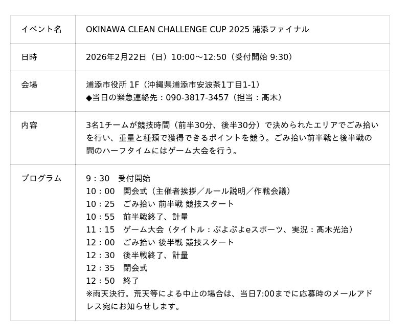 【eスポーツ×ごみ拾い】予選30チーム60人を勝ち抜いた頂点が決まる!『OKINAWA CLEAN CHALLENGE CUP 2025 浦添ファイナル』開催決定