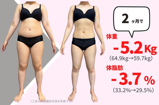 平均体重減少:-5.2kg 最大体重減少:-12.8kg 継続率:約87%※