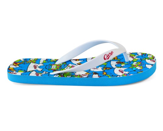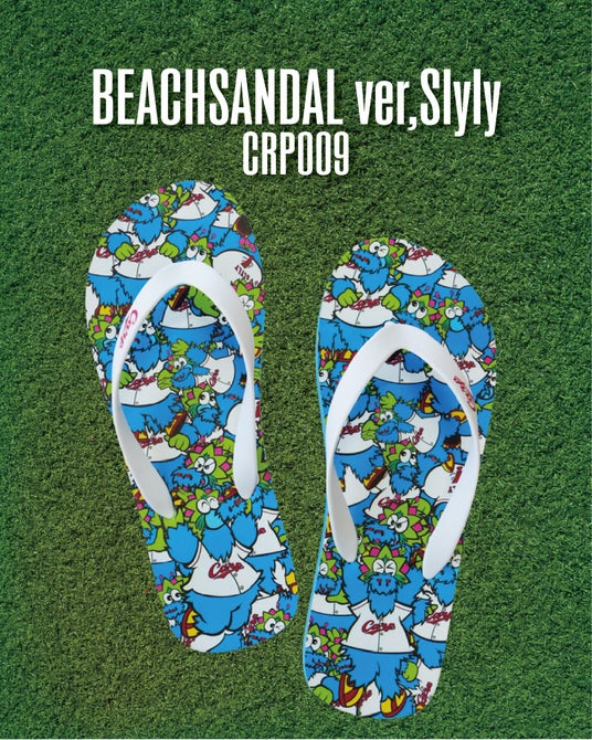 ■ビーチサンダルバージョンスラィリー変幻自在な動きでスタジアムを沸かせるスラィリーの魅力を、ぎゅっと凝縮してビーチサンダルに落とし込みました。全面を埋め尽くすスラィリーたちが圧倒的な存在感を放ちます。ストラップはホワイトで、カープロゴがワンポイントで入っています。
