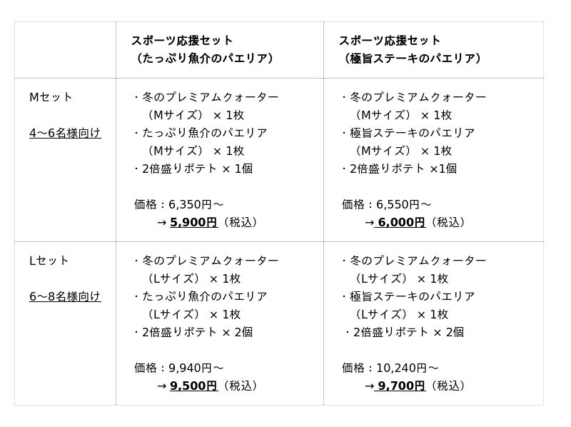 ※価格は全て税込です ※画像はイメージです ※「スポーツ応援セット」はパエリア導入店舗限定です