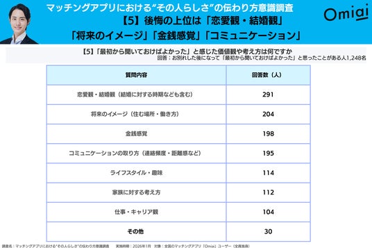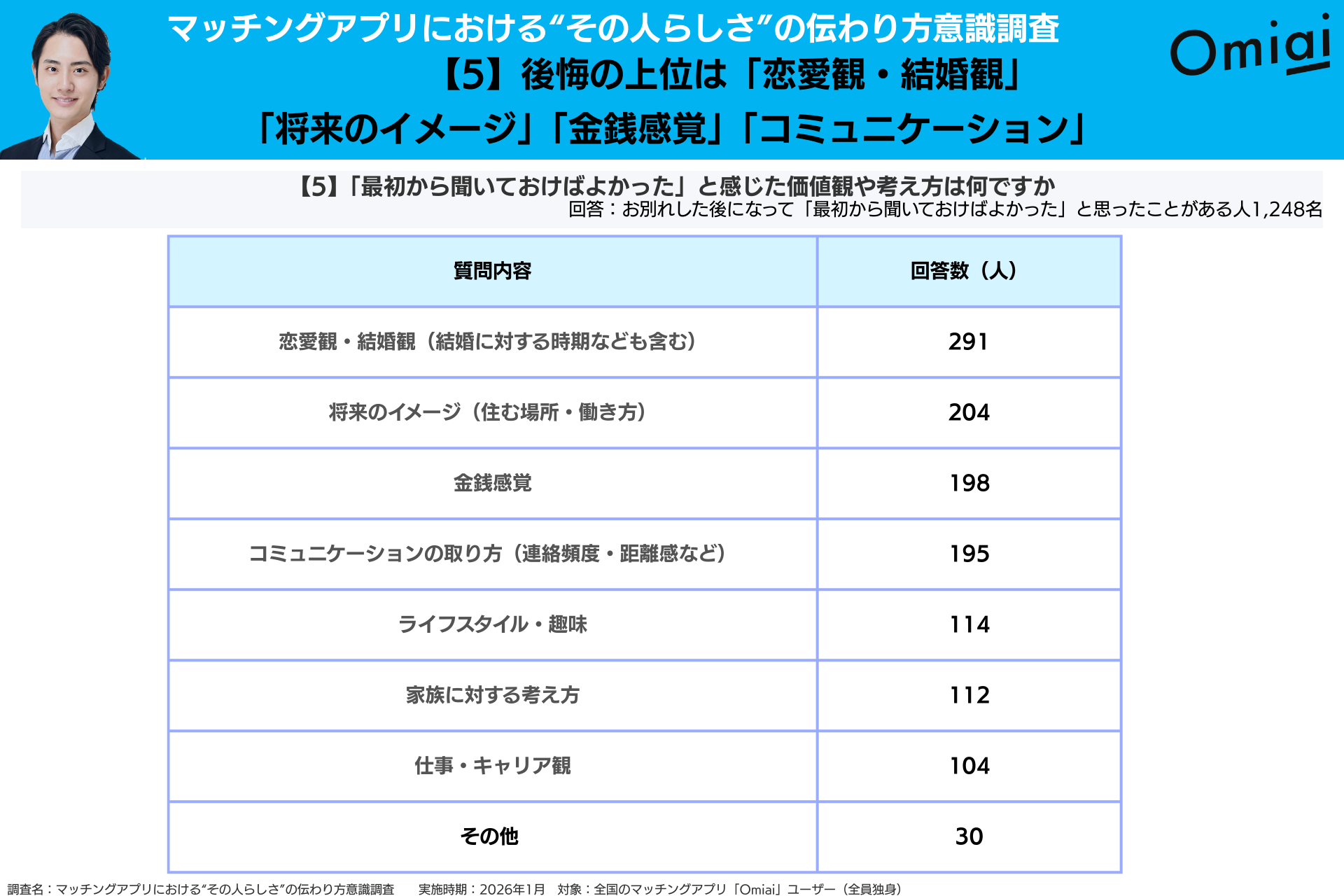 【5】後悔の上位は「恋愛観・結婚観」「将来のイメージ」「金銭感覚」「コミュニケーション」