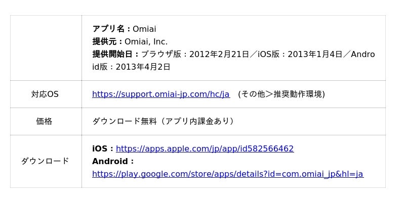 「Omiai」は2012年2月に日本でいち早く誕生した、"まじめな出会い"を提供するマッチングアプリの元祖です。