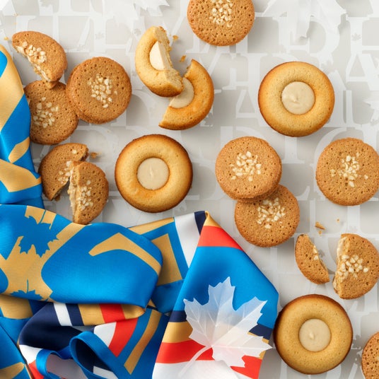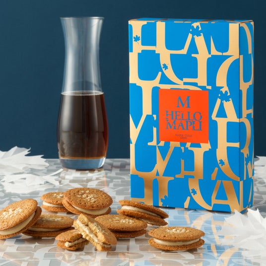カナダ・ケベック州でつくられたメープルシロップとメープルシュガーを加えて炊き上げた自家製のメープルキャラメル。メープルシュガーとニュージーランド産生乳でつくられたグラスフェッドバターを練り込み、黄金色に焼き上げたクッキーでサンドしました。