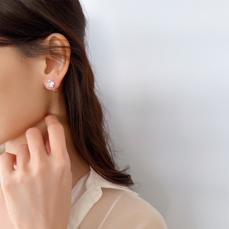 ネジを回さずに、バネの反発力を利用して耳たぶを挟む構造のイヤリングです。