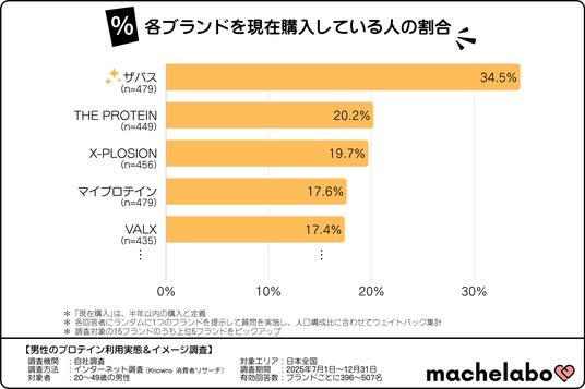 そこで、株式会社マシェバラトークが運営するオウンドメディア『マシェラボ』( https://machetalk.jp/media/ )は、20~49歳の男性を対象に、主要なプロテインブランドの利用実態およびイメージ調査を実施しました。