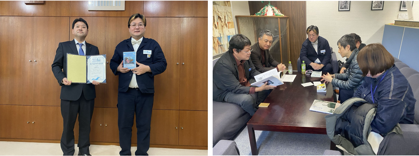一般社団法人日本昔ばなし協会と日本財団が取り組む「海ノ民話のまちプロジェクト」は、2026年1月28日(水)に長崎県平戸市を舞台にした海ノ民話アニメーション「女州と蛸」が完成したため、アニメ監督が平戸市を訪問しアニメのお披露目と「海ノ民話のまち」認定式を実施しました。