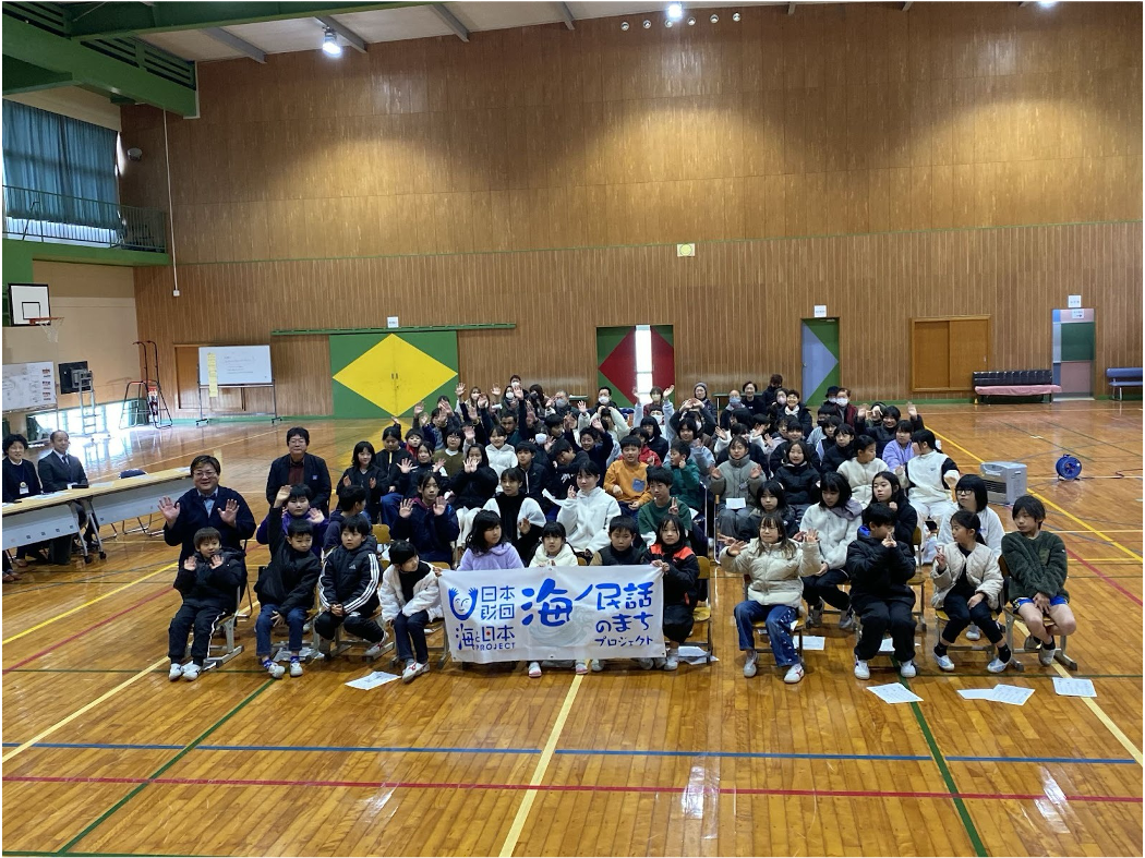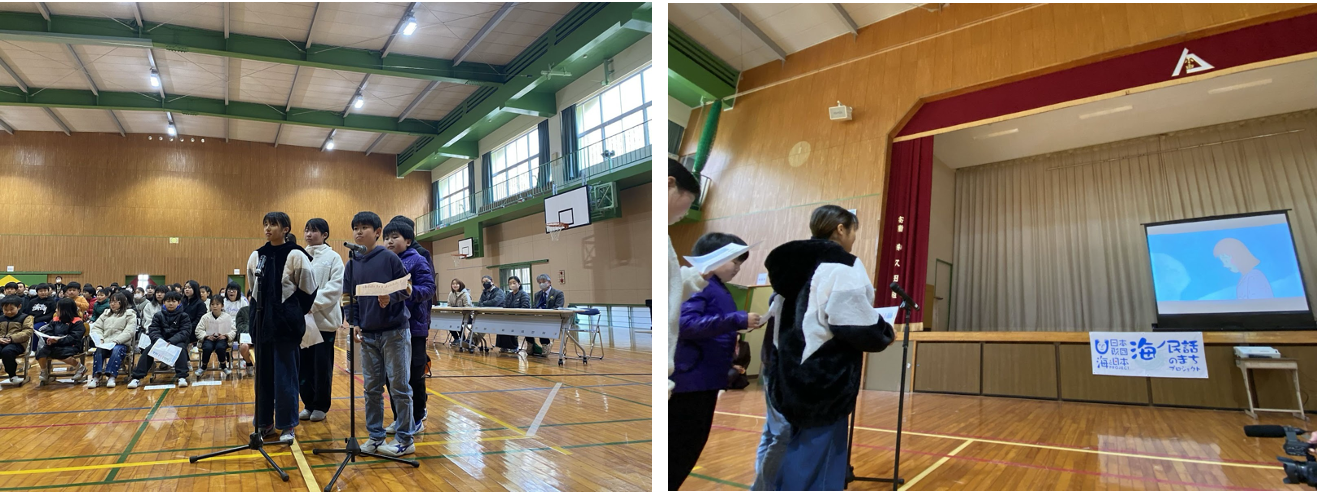 また翌日、野子小学校で同作品の上映会イベントを実施しました。このイベントは、次世代へ豊かで美しい海を引き継ぐために、海を介して人と人とがつながる"日本財団「海と日本プロジェクト」"の一環で実施しています。