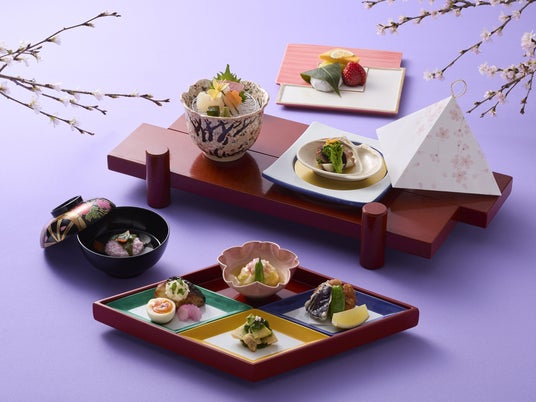 日本料理「源氏香」では、日本を象徴する桜と、芽吹きの季節を告げる筍をテーマにした「春花会席」を、3月4月限定でご提供いたします。素材の魅力を最大限に引き出す"引き算の美学"を大切に、滋味深い品々を、器や盛付けにも春の趣向を凝らして月替わりの献立でご用意いたします。