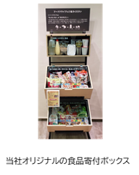 お客さまから「フードドライブ」活動へのご理解と、より一層のご支援を得られるよう、店内に当社オリジナルの食品寄付ボックスを常設しております。