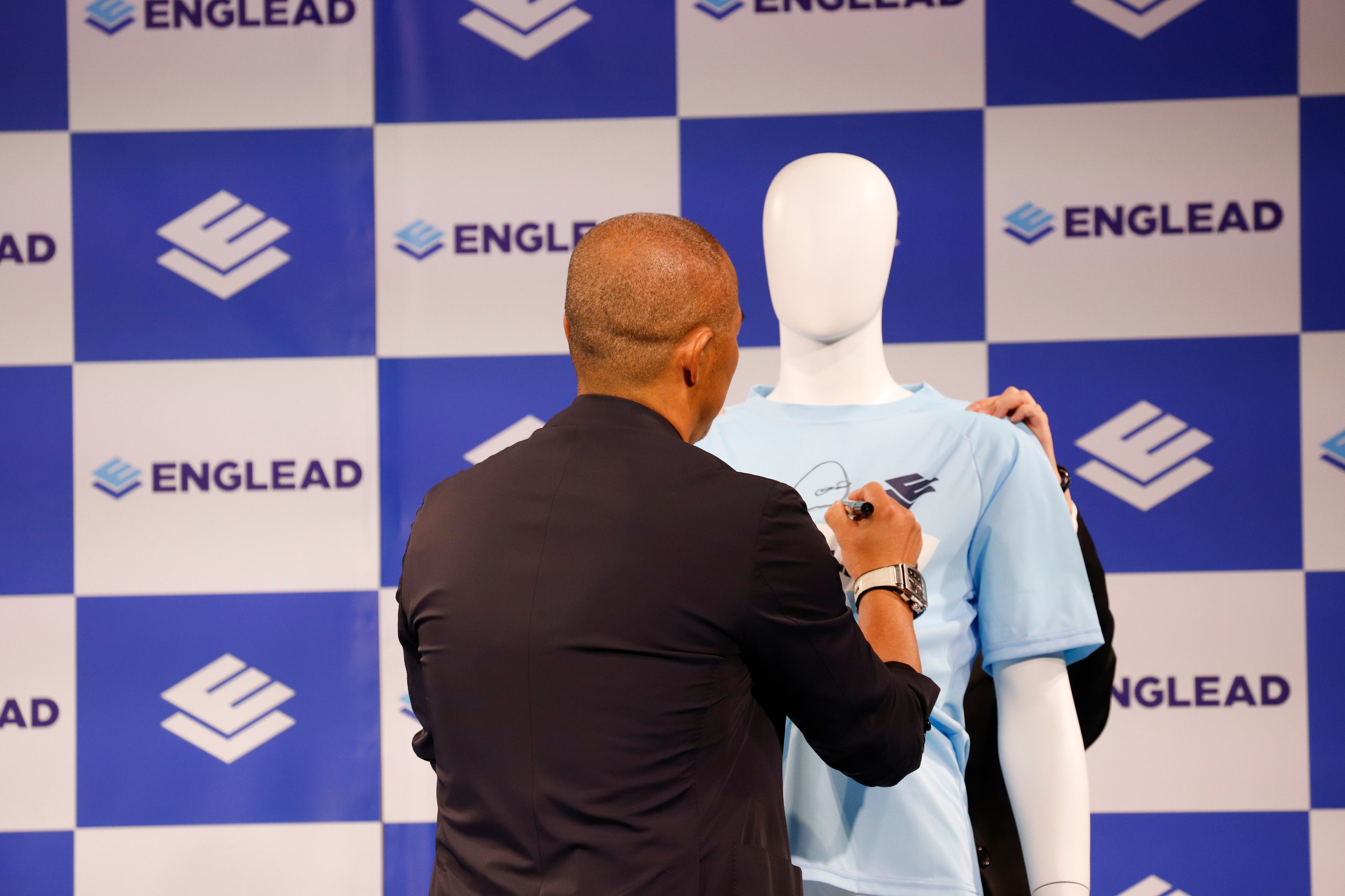 ゲストとしては、イングリード歴4年で、CMにご出演の元プロサッカー選手・小野伸二さんが新アンバサダーとして登壇。CMの衣装で登場し、イングリードの学習で培った英語でのトークや、小野さん自身の英語学習に関するフリップトークを行いました。また、"ナンバーワン英語コーチングサービス"「イングリード」のアンバサダー就任を記念して製作された、背番号1のイングリードオリジナルのサッカーユニフォームに、小野さんが直筆でサインをしました。