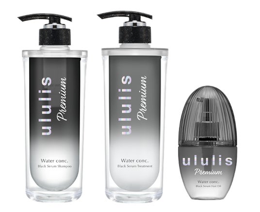 今回発売となる『ululis Premium(ウルリス プレミアム)』は、 ululis史上最高※1のプレミアム処方が採用されており、トステア(R)︎*1やPDRN*2などの次世代MIZU美容液※1※2を配合、さらにブラックセラム水*3が髪に浸透※3し髪のダメージを徹底補修します。高濃度配合※4されたコラーゲン水*4とケラチン水*5が髪を包み込み、ululis最高峰の超うるうる髪※1へ導きます。
