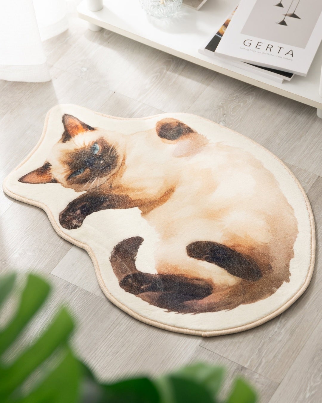 猫がお部屋に丸まっているようなデザインの もこもこ起毛マット など