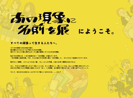 私たちの日常には、いまだ名前のない「あの現象」が溢れています。『あの現象に名前を展』は、そんな日常に潜む「あの現象」に、ひとつひとつユーモアあふれる名前をつけていく展覧会です。