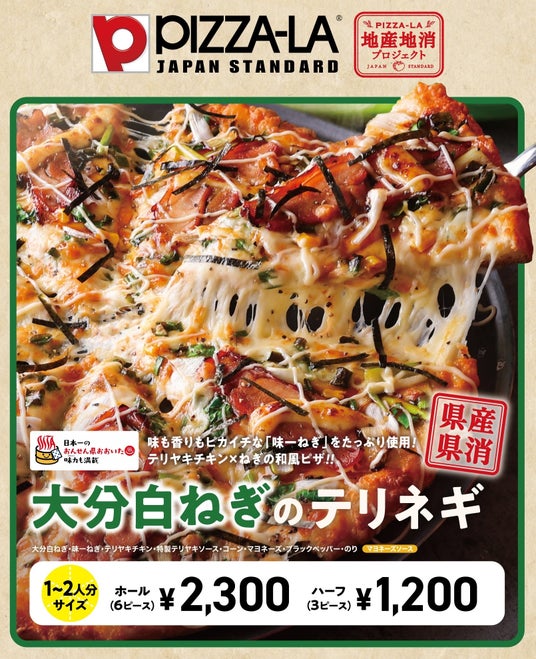株式会社フォーシーズ(本社:東京都港区南青山、代表取締役会長兼CEO:淺野幸子)が展開する宅配ピザ「PIZZA-LA」は、大分県産食材を使用した「県産県消」の取り組みとして、ご当地ピザ『大分白ねぎのテリネギ』を期間限定で販売いたします。