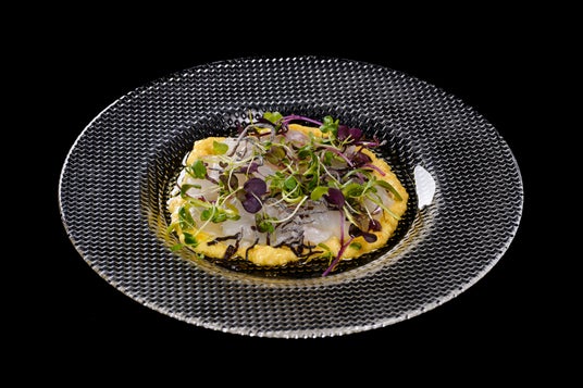 今月の前菜は、寒鮃(かんひらめ)のカルパッチョ。